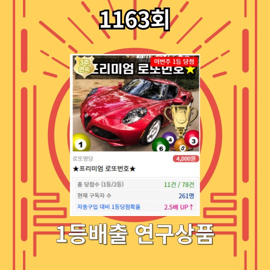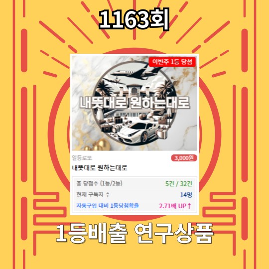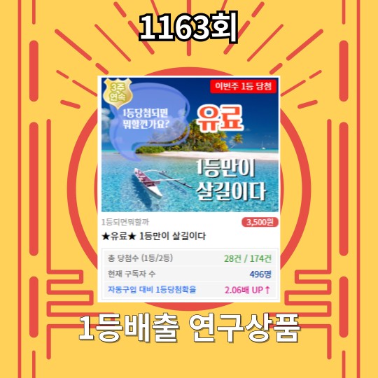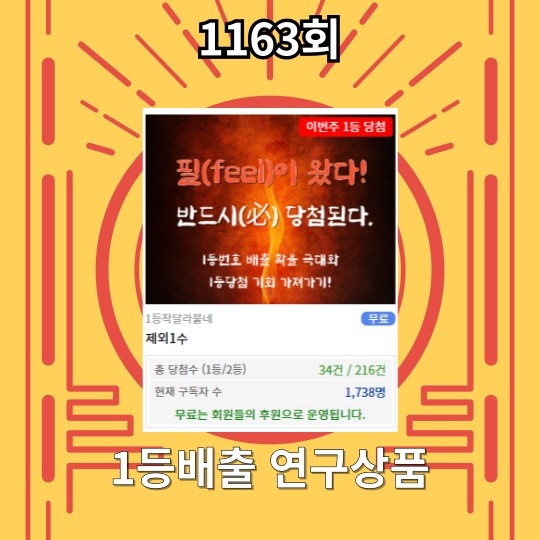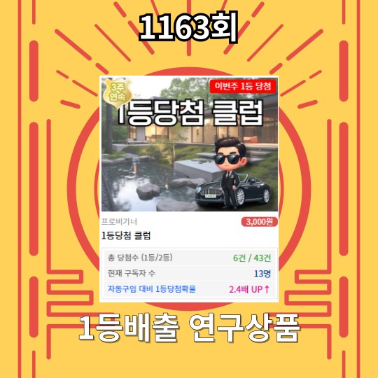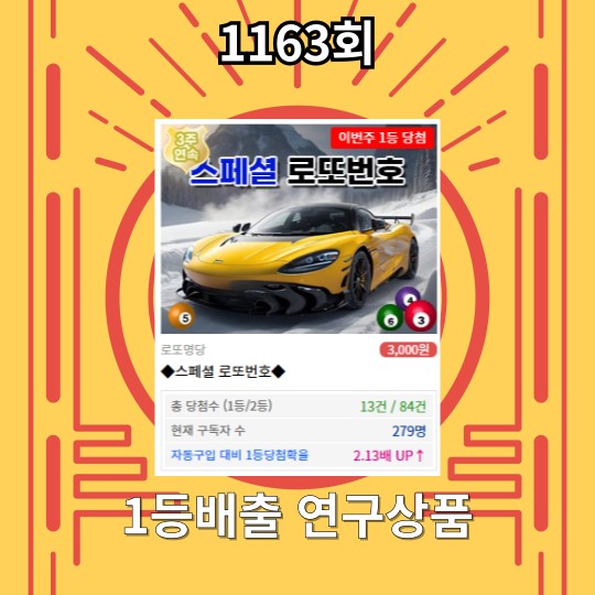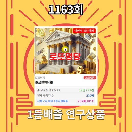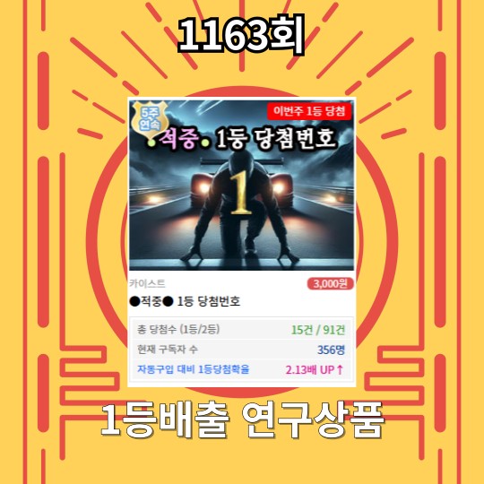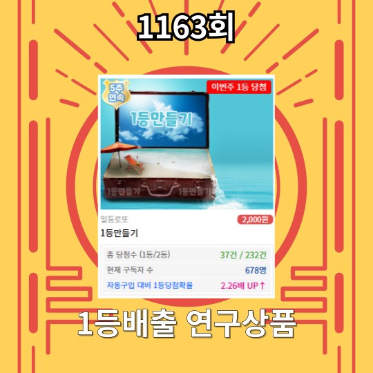 1163회차 로또당첨번호 로또스페셜 1등배출 연구상품