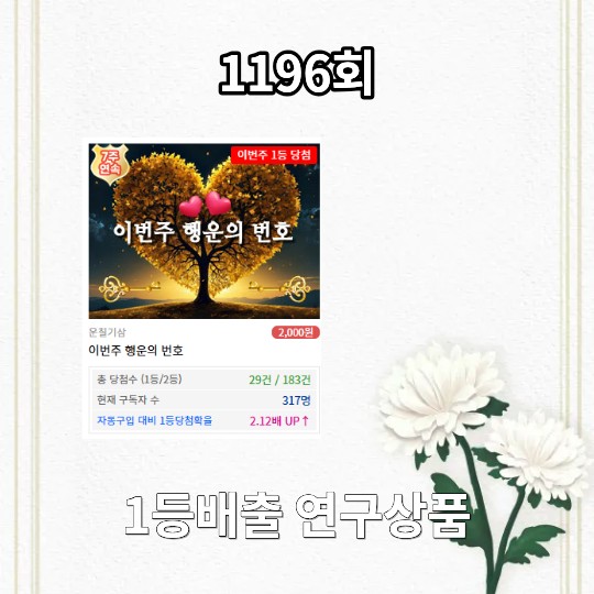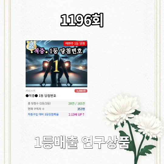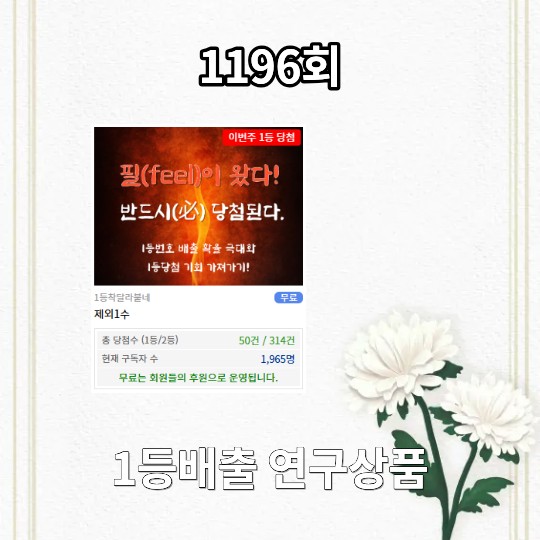 1196회차 로또당첨번호 로또스페셜 1등배출 연구상품